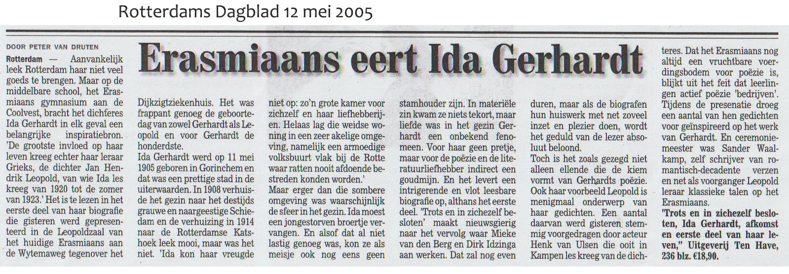 De volgende dag verscheen al een bericht over ons boek in het Rotterdams Dagblad.